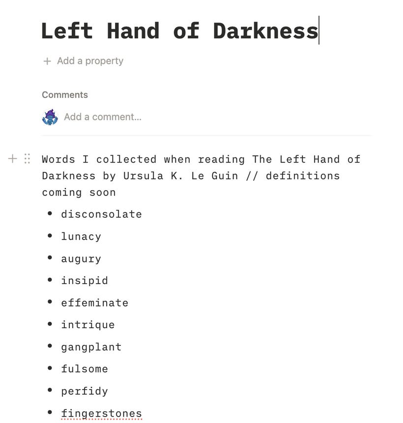★★★★★★ fleshing out the ‘word lists’ i’ve been making while reading this year - i made lists of words but have yet to add definitions + integrate!